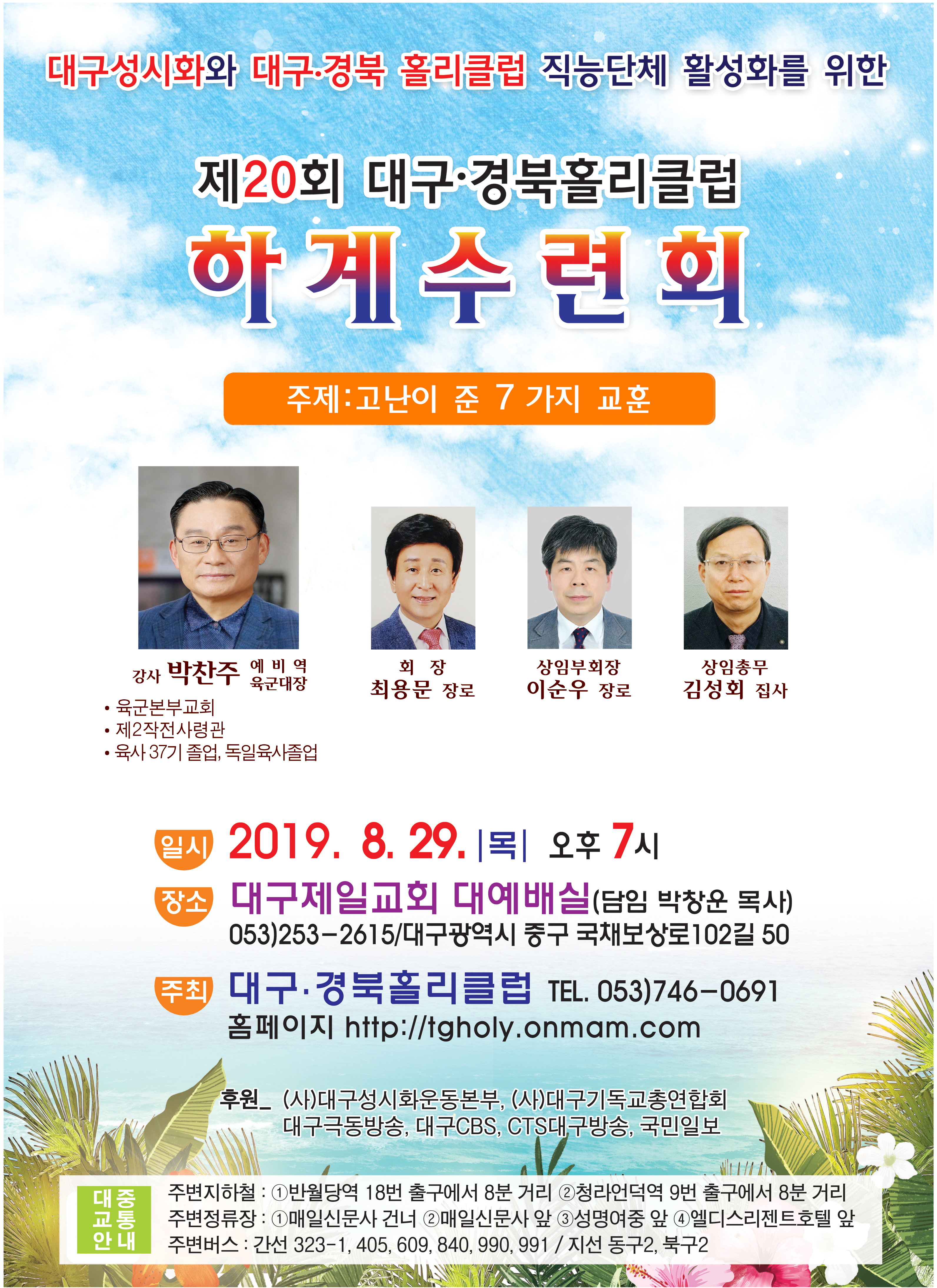 | 제20회 대구경북홀리클럽 하계수련회 안내 | 운영자 | 2019-07-30 | |||