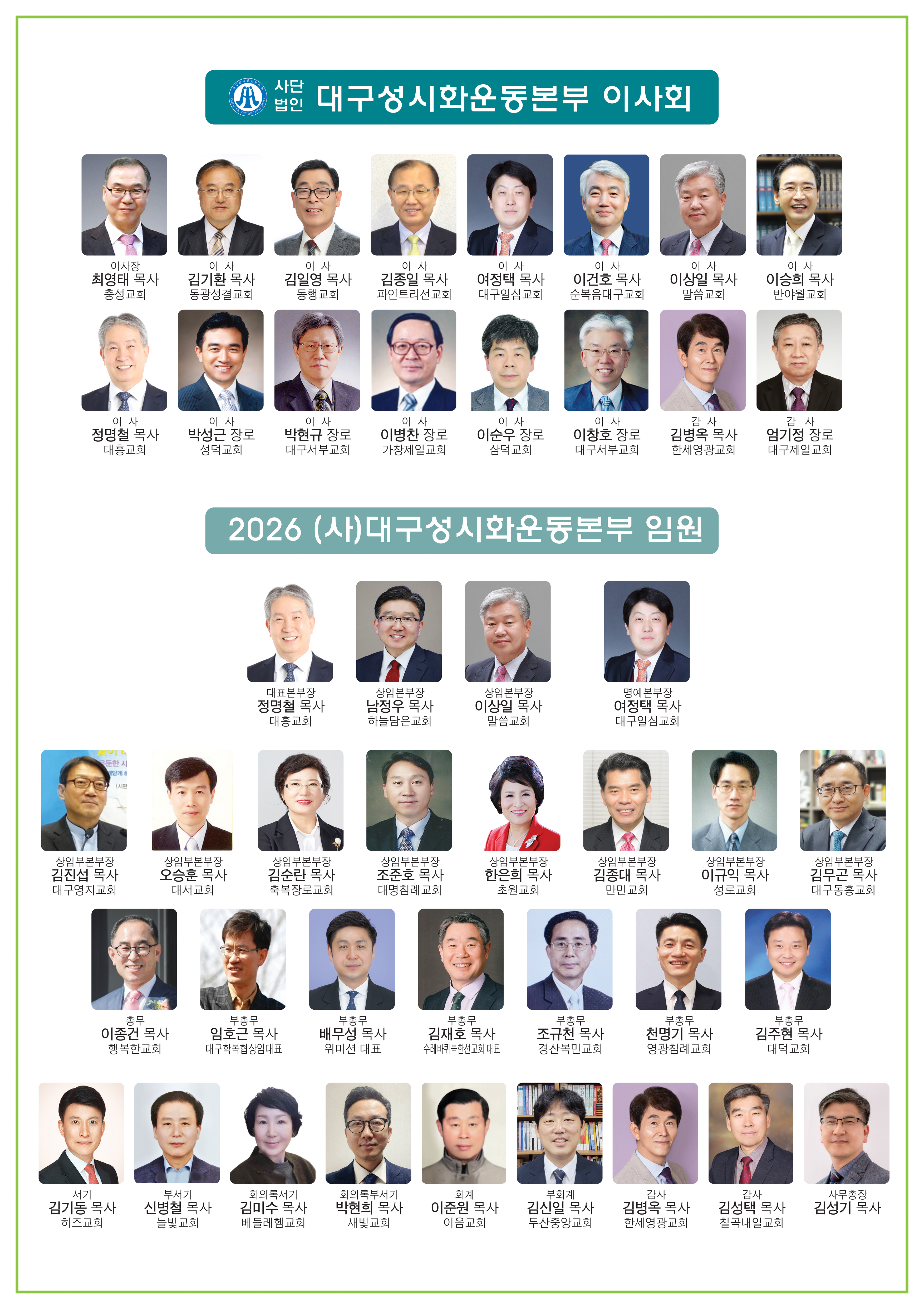 교구협의회장 남구: 여정택 달서구: 전원락 달성군: 전승덕 동구: 김상훈